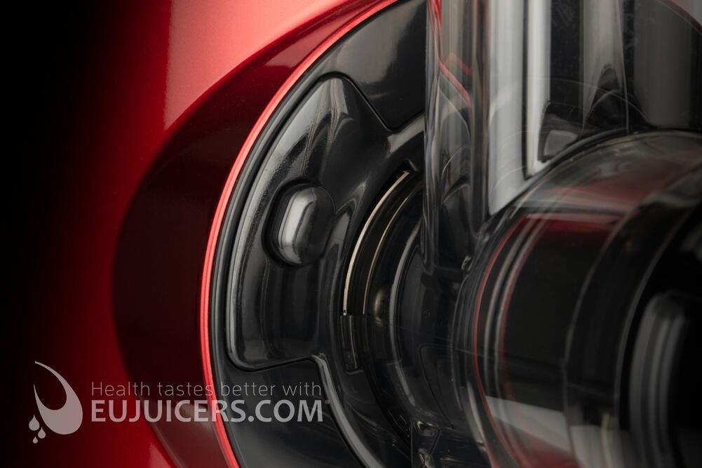 Много ни хареса премахването на барабана за изцеждане с едно докосване. Антикапковият клапан за сок ни изненада, тъй като не е нещо, което влияе върху процеса на изцеждане, но е практично решение когато е необходимо да разглобите за почисване, както и можете да го затворите след като приключите изцеждането на сок, за да предотвратите капенето. Също така е хубаво да го държите затворен, когато почиствате барабана, за да му позволите да се напълни с вода. Двойната тръба за поставяне на продукти е удобна за листни зеленчуци, точно както тази при вертикалната Sana 828. Въпреки това е малко по-трудно да почистите вътрешността на тръбата, ако правите например ядкова паста. В този случай бихме препоръчали четка с дълги косми.